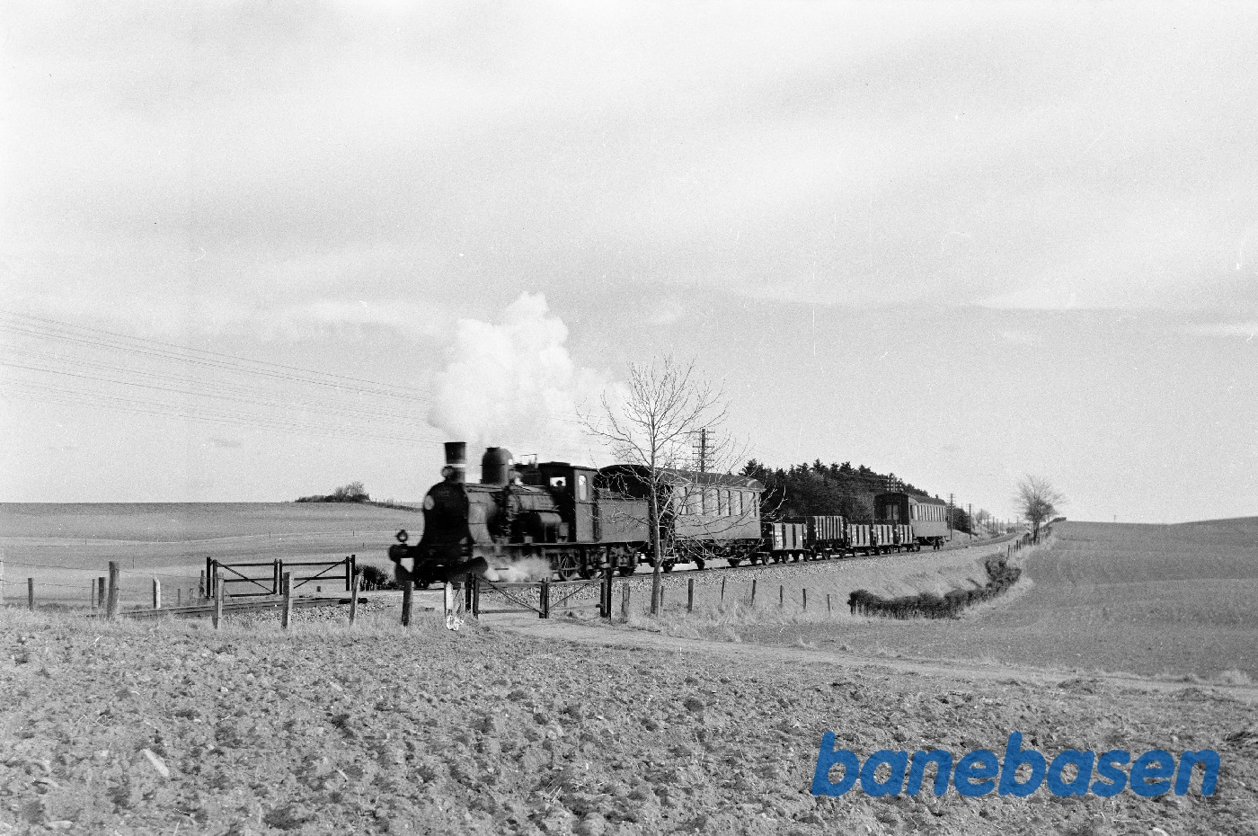 Motiv:Damplokomotiv C 712 med godstog på fri strækning
