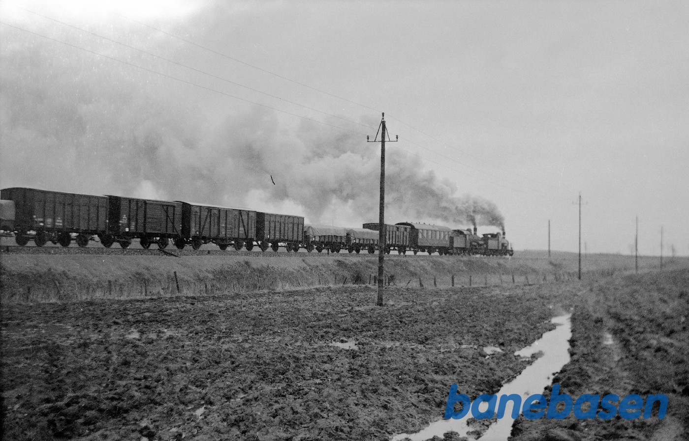 Motiv:Damplokomotiv C 712 + D-maskine med godstog