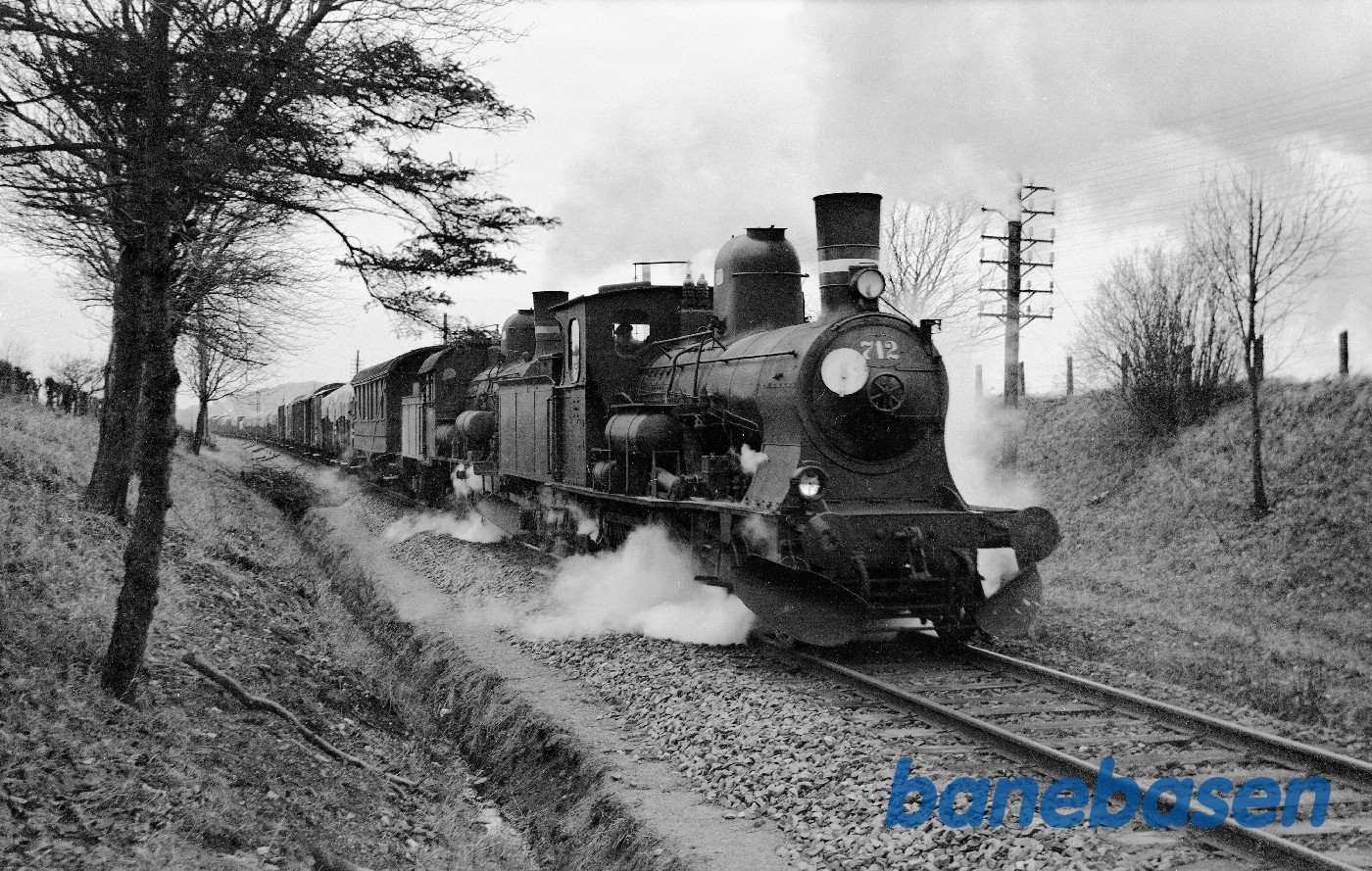 Motiv:Damplokomotiver C 712 + D-maskine med godstog
