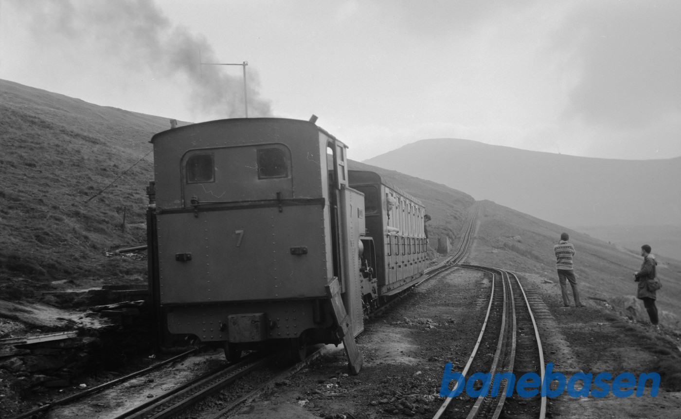 Damplokomotiv Snowdon Mountain Railway nr. 7 "AYLWIN" afventer krydsning