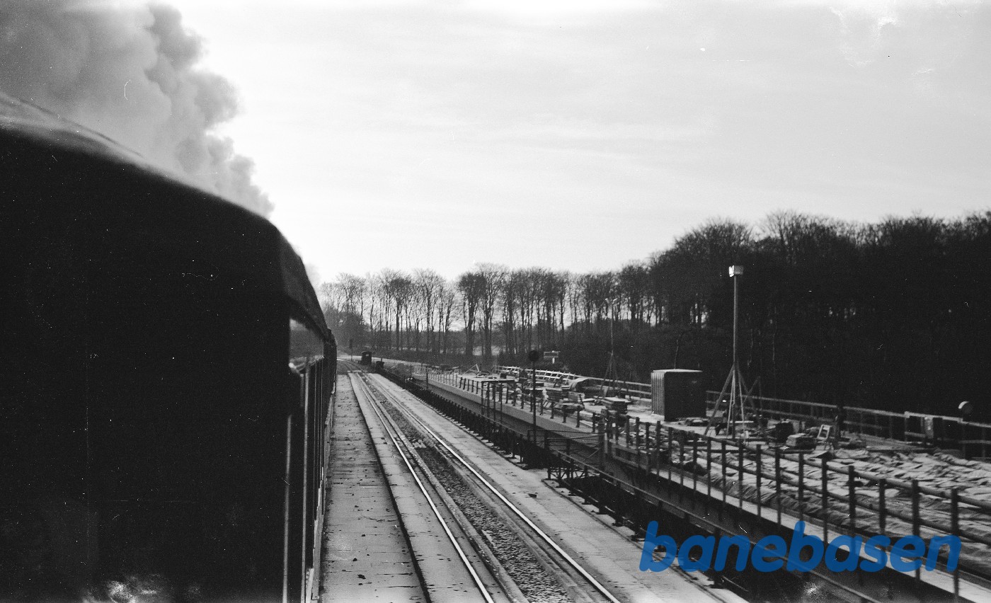 Motiv:Vue fra tog over Strandmøllebroen, ny bro under opførelse ved siden af