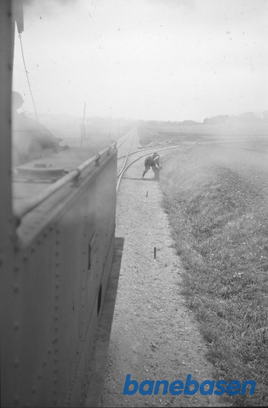 Motiv:Vue fra lokoførerens plads på damplokomotiv nr. 11 ved sidesporet til grusgraven ved Dyndmose