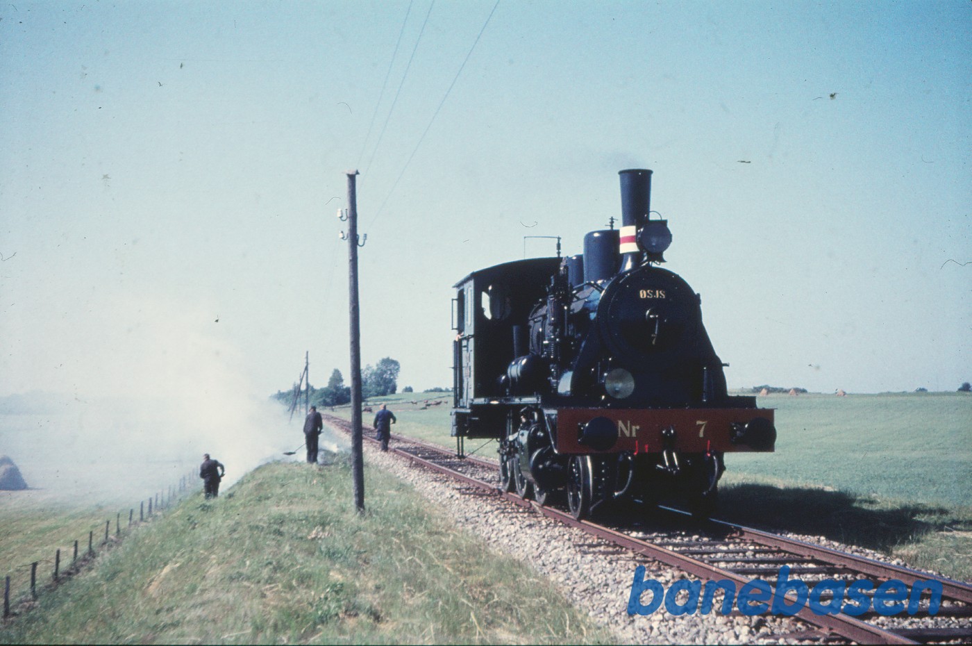 Ildslukning på baneskråning under prøvekørsel med damplokomotiv nr. 7