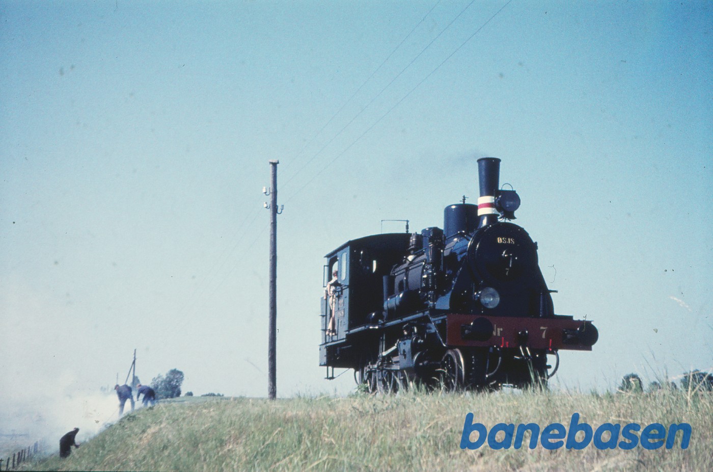 Motiv:Ildslukning på baneskråning under prøvekørsel med damplokomotiv nr. 7