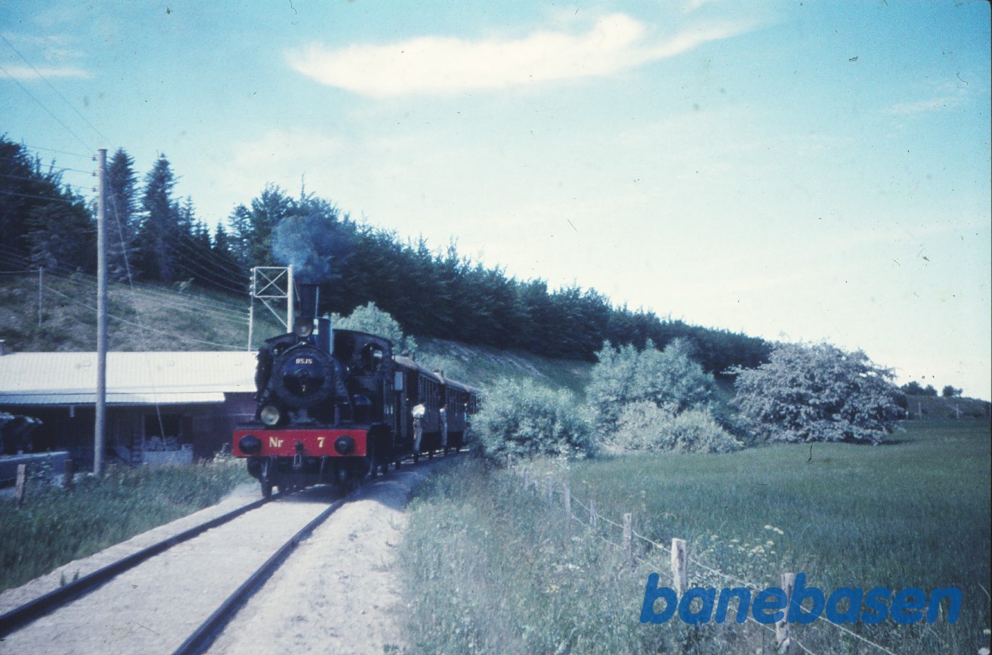 Motiv:Damplokomotiv nr. 7 med udflugtstog for DMJK