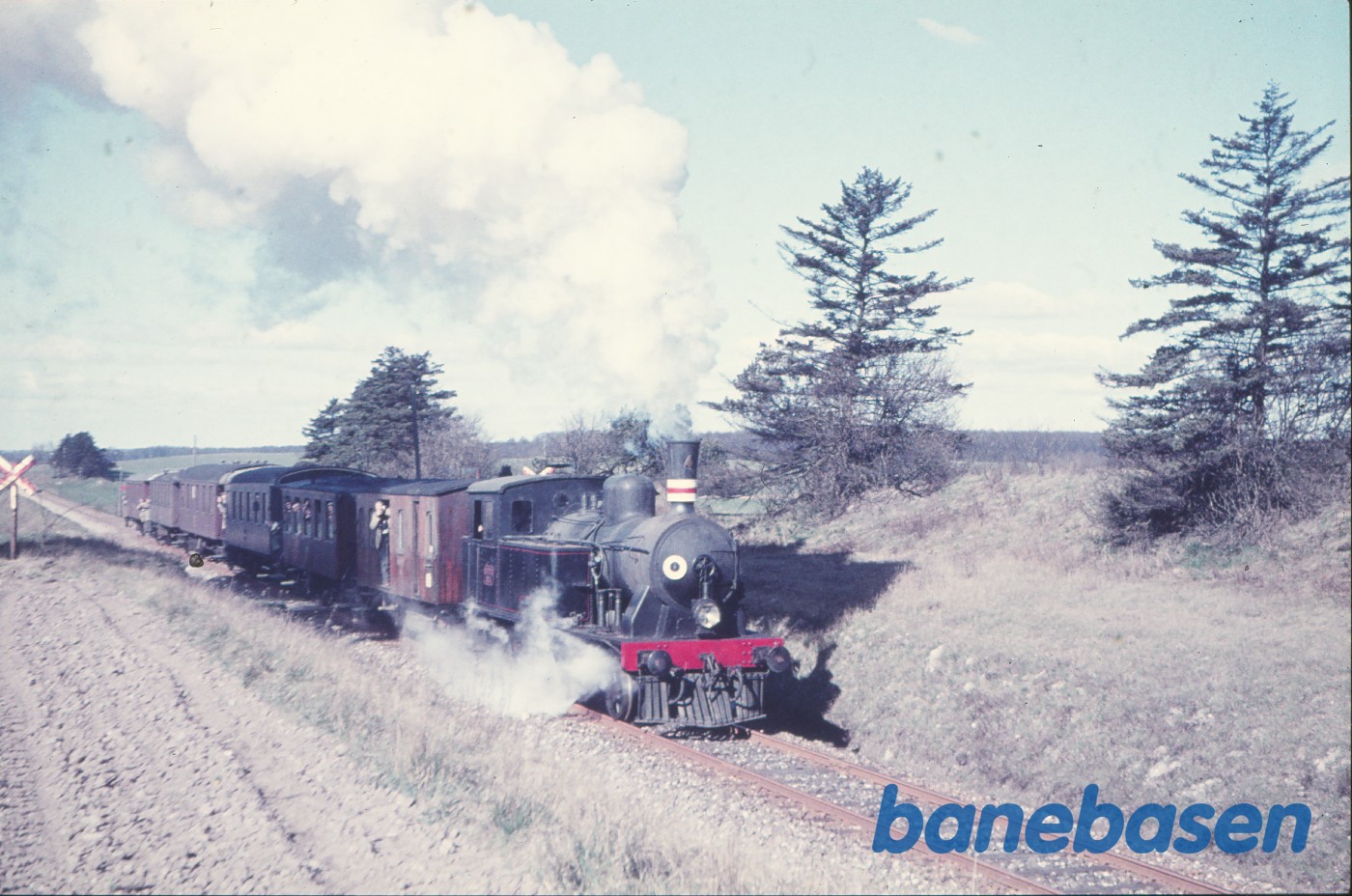 Motiv:Damplokomotiv nr. 4 med udflugtstog for DJK på fri strækning