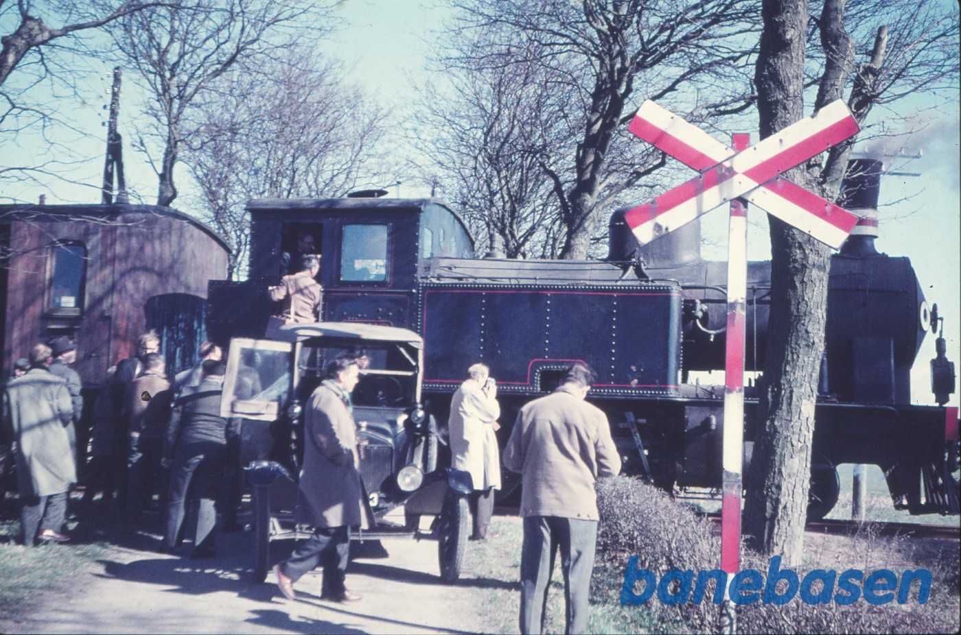 Damplokomotiv nr. 4 med udflugtstog for DJK på fri strækning møder Ford årg. 1924