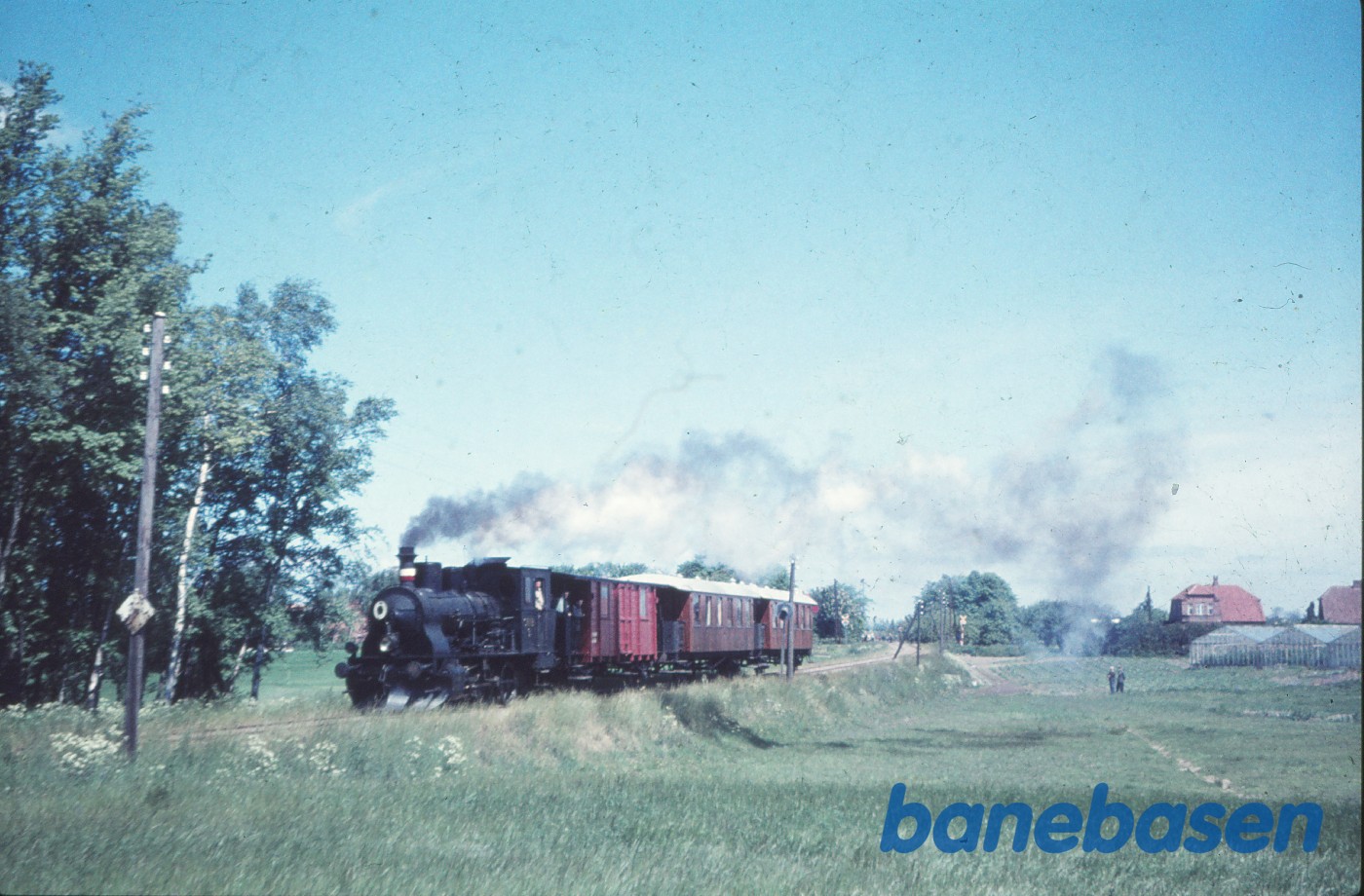 Motiv:Damplokomotiv nr. 3 med udflugtstog for DJK på fri strækning