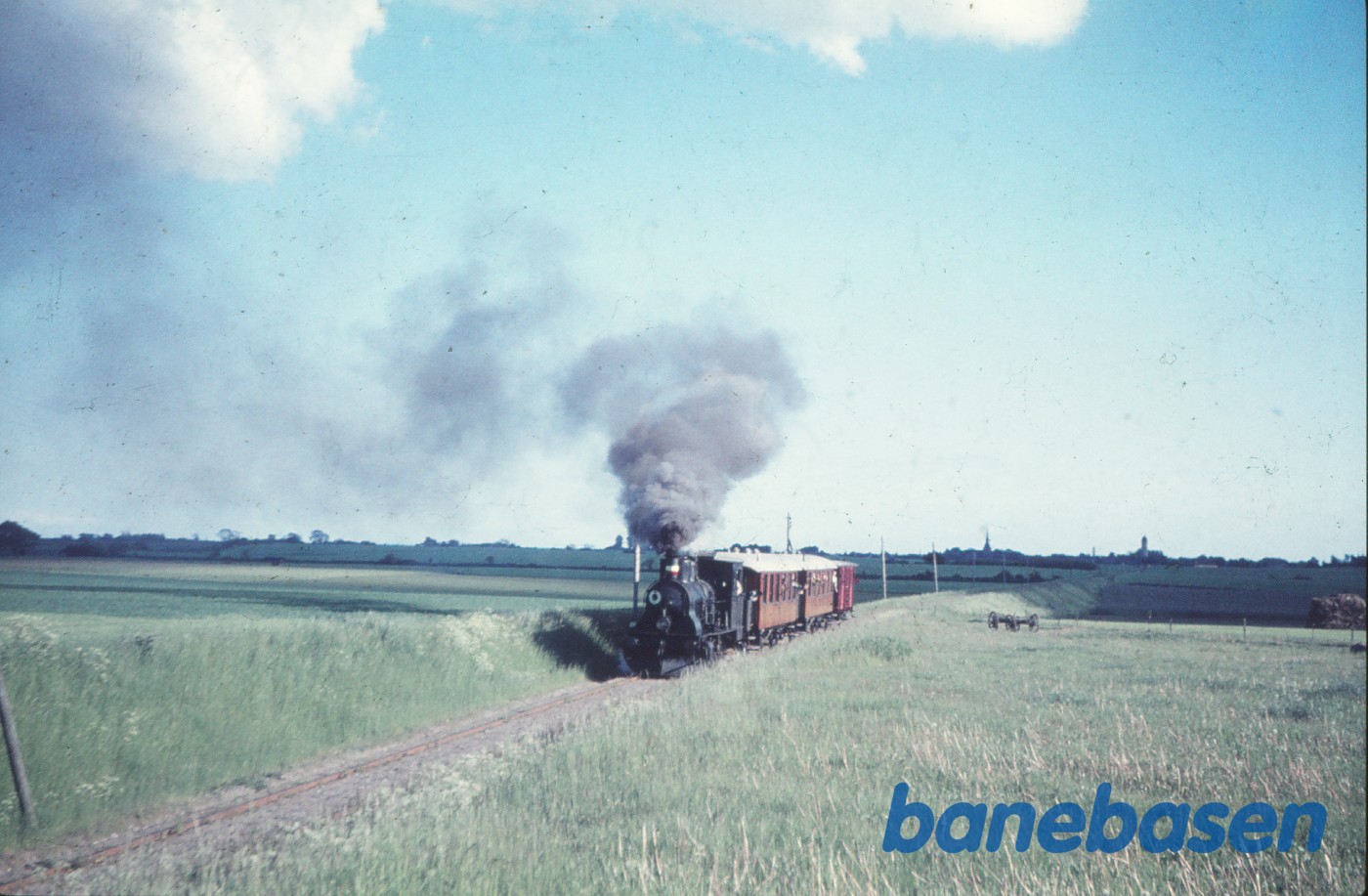 Damplokomotiv nr. 3 med udflugtstog for DJK på fri strækning efter Nysted