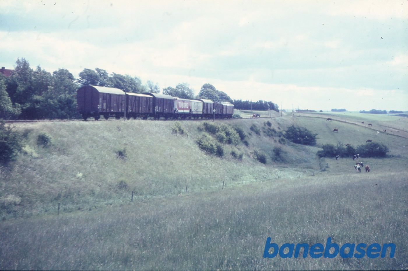 Motiv:Diesellokomotiv DL 42 med godstog på fri strækning