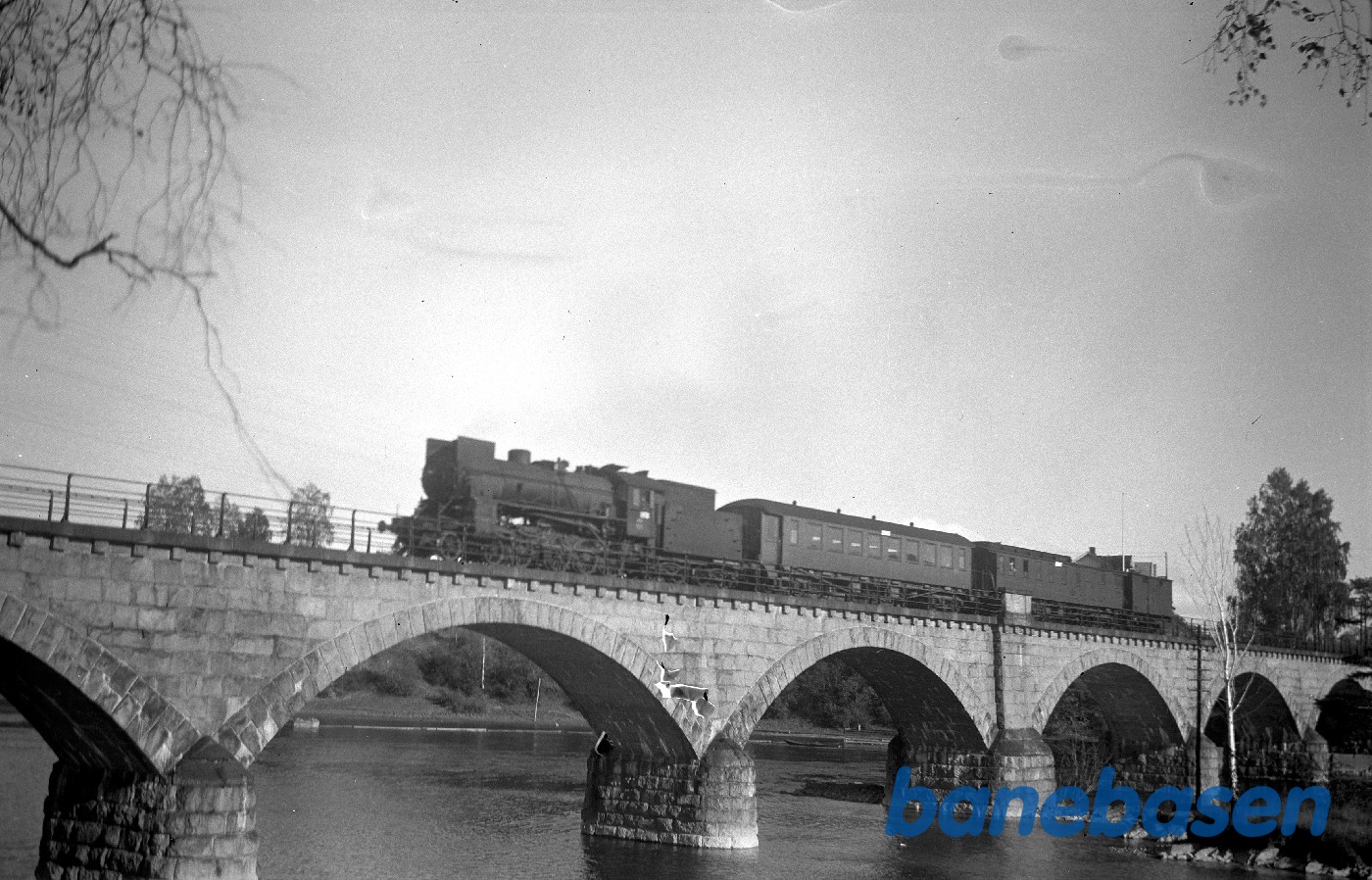Damplokomotiv type 31b med persontog fra Roa på Begna bro