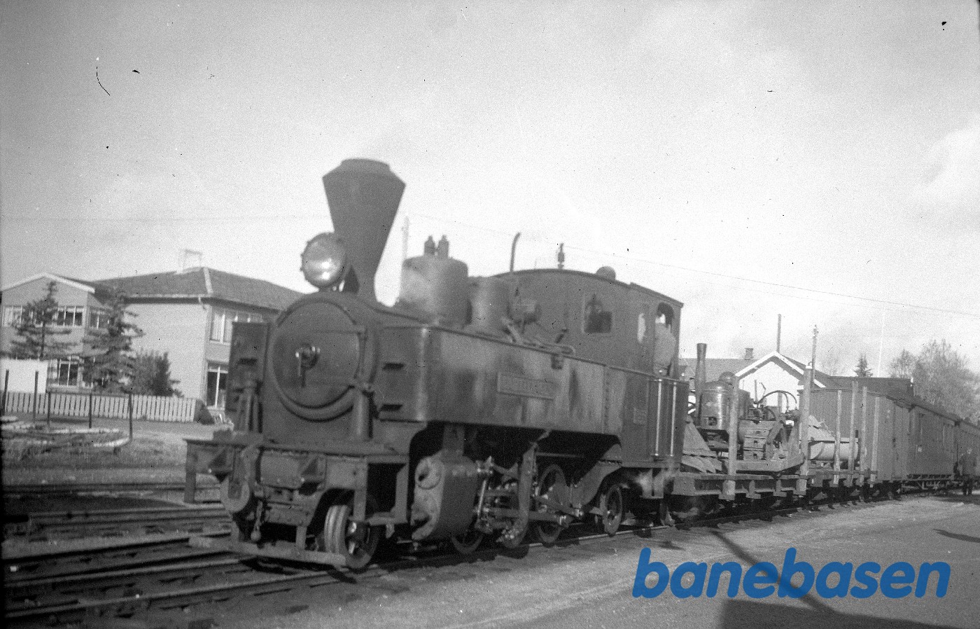 Damplokomotiv nr. 5 med godstog til Skulerud