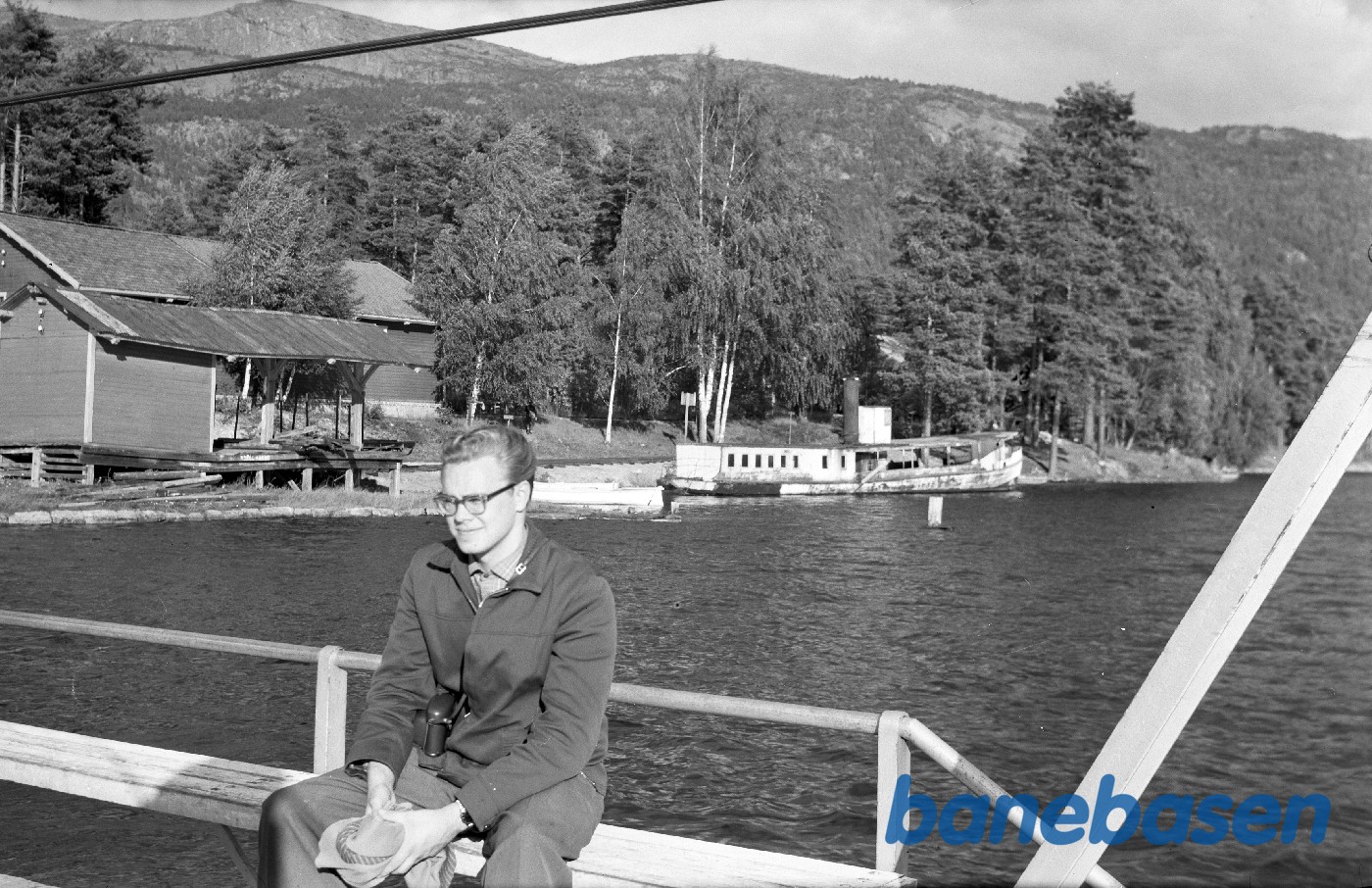 Byglandsfjord station, set fra fjorden, på bænken Mogens Bruun