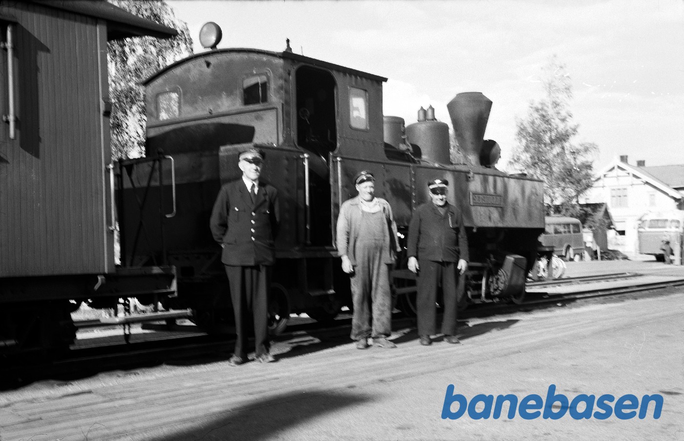 Damplokomotiv nr. 4 "Setskogen" med togpersonalet