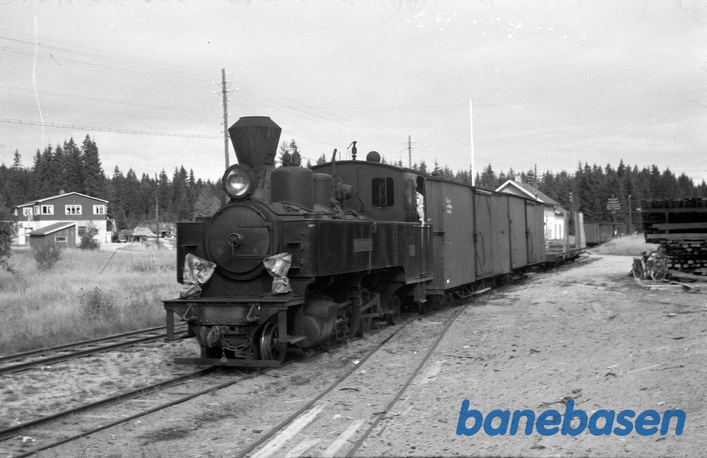 Damplokomotiv nr. 4 med godstog til Skulerud