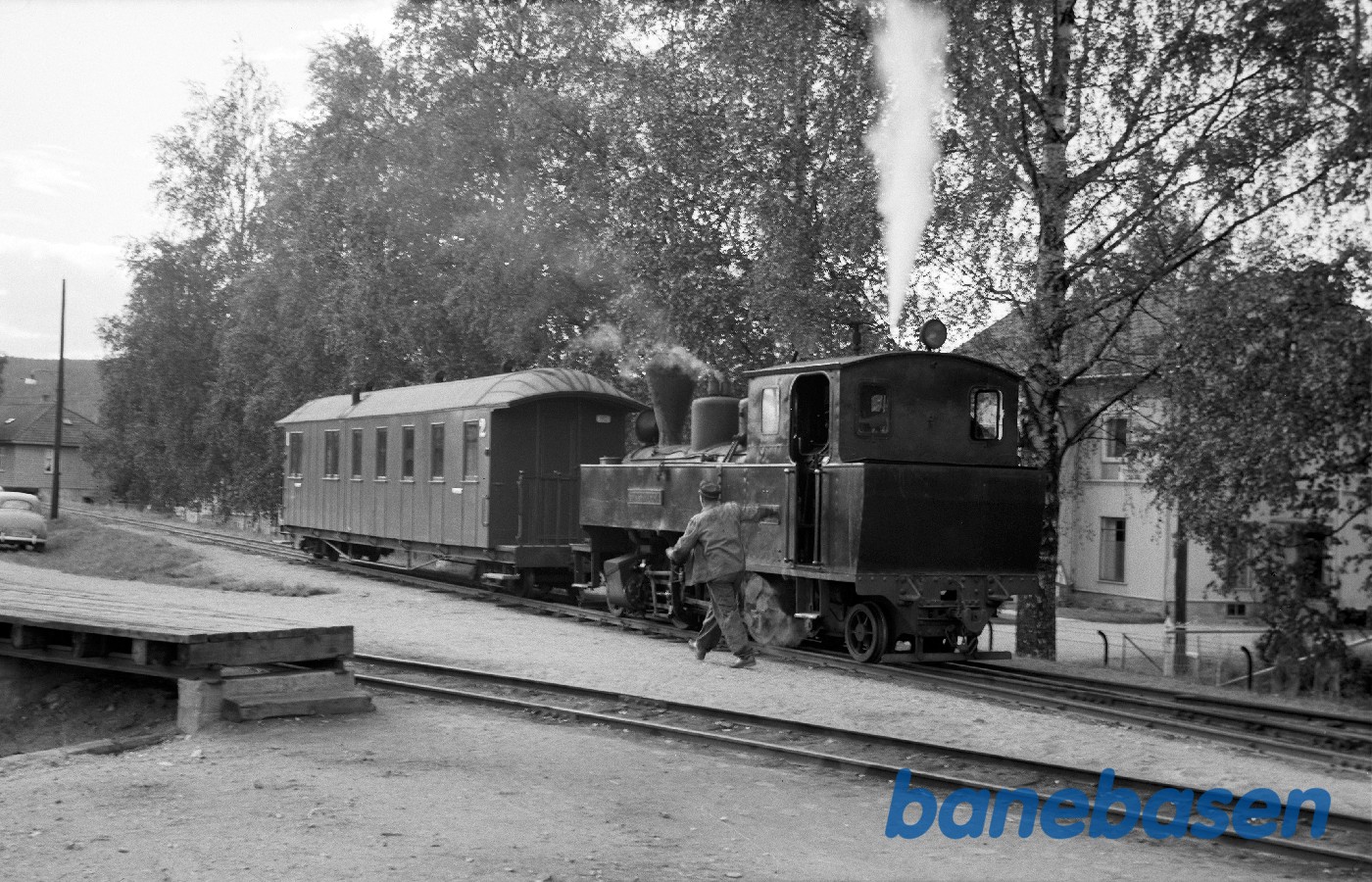 Motiv:Damplokomotiv nr. 4 rangerer med personvogn