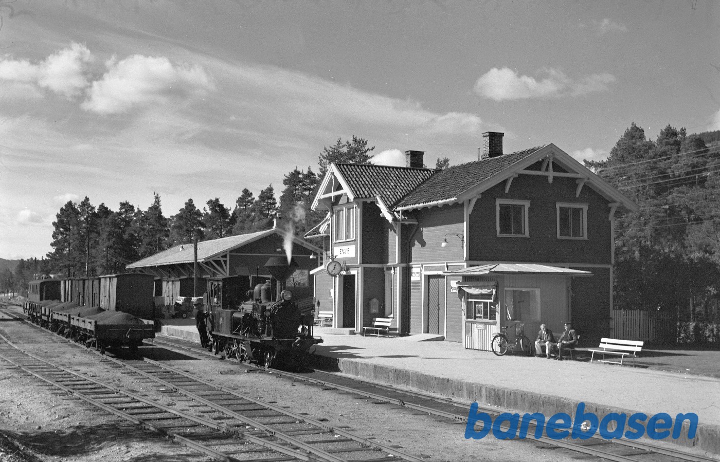 Damplokomotiv nr. 5 rangerer med godsvogne