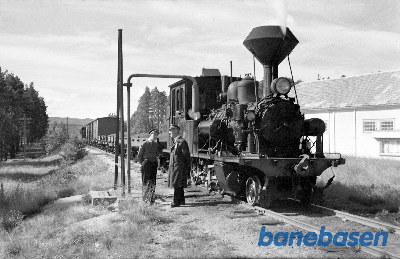 Motiv:Damplokomotiv nr. 5 med godstog 5661 tager vand