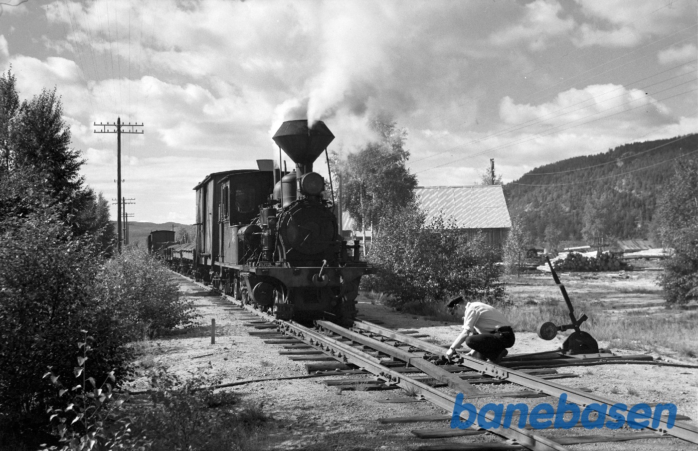 Damplokomotiv med godstog ved sidesporet til nikkelværket
