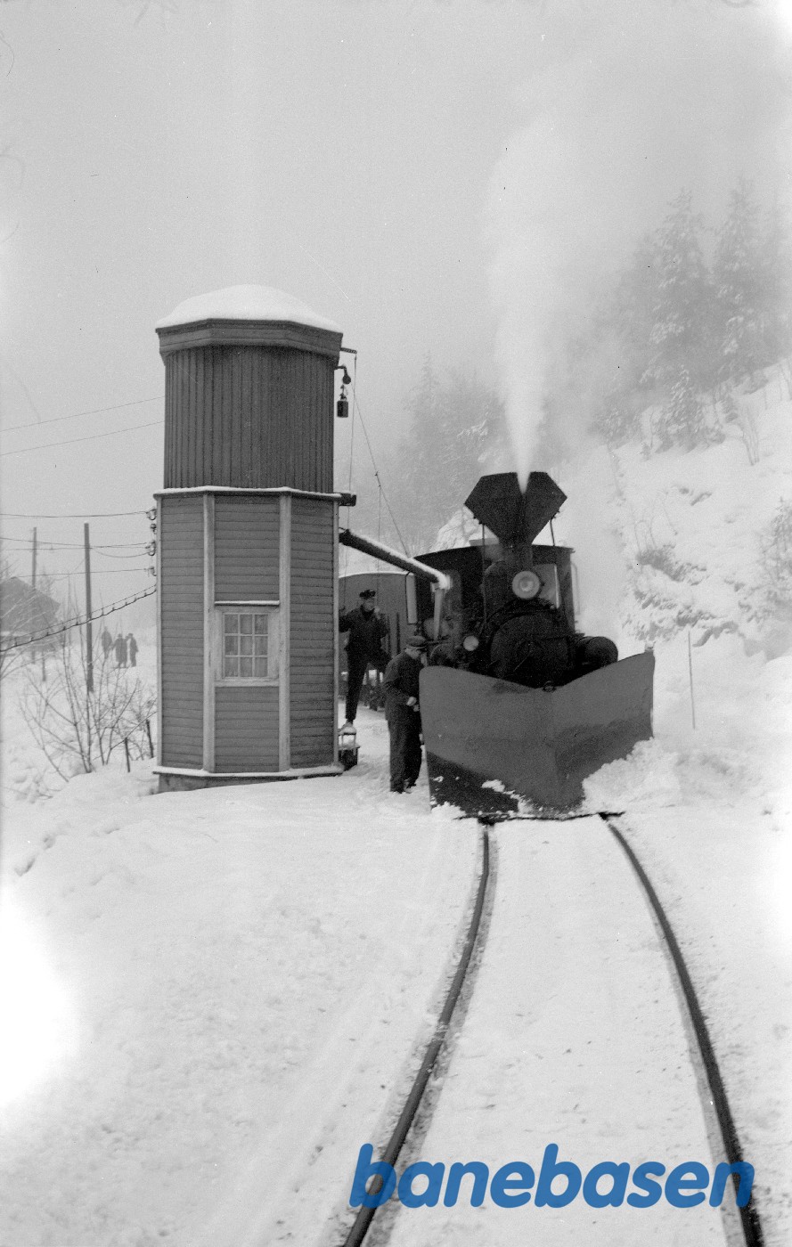 Damplokomotiv med godstog 5661 tager vand