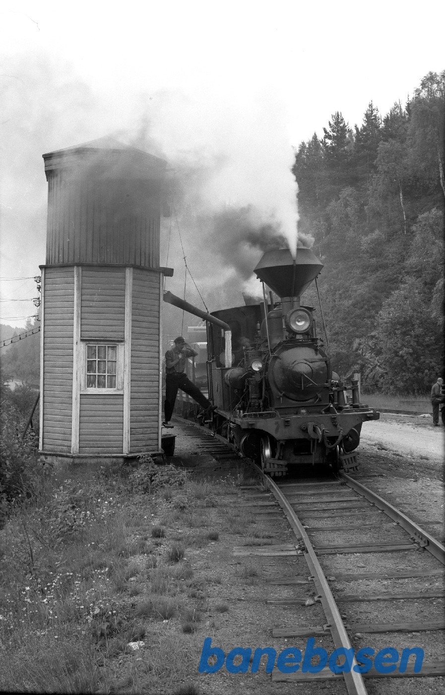 Motiv:Damplokomotiv nr. 2 med godstog 5661 tager vand