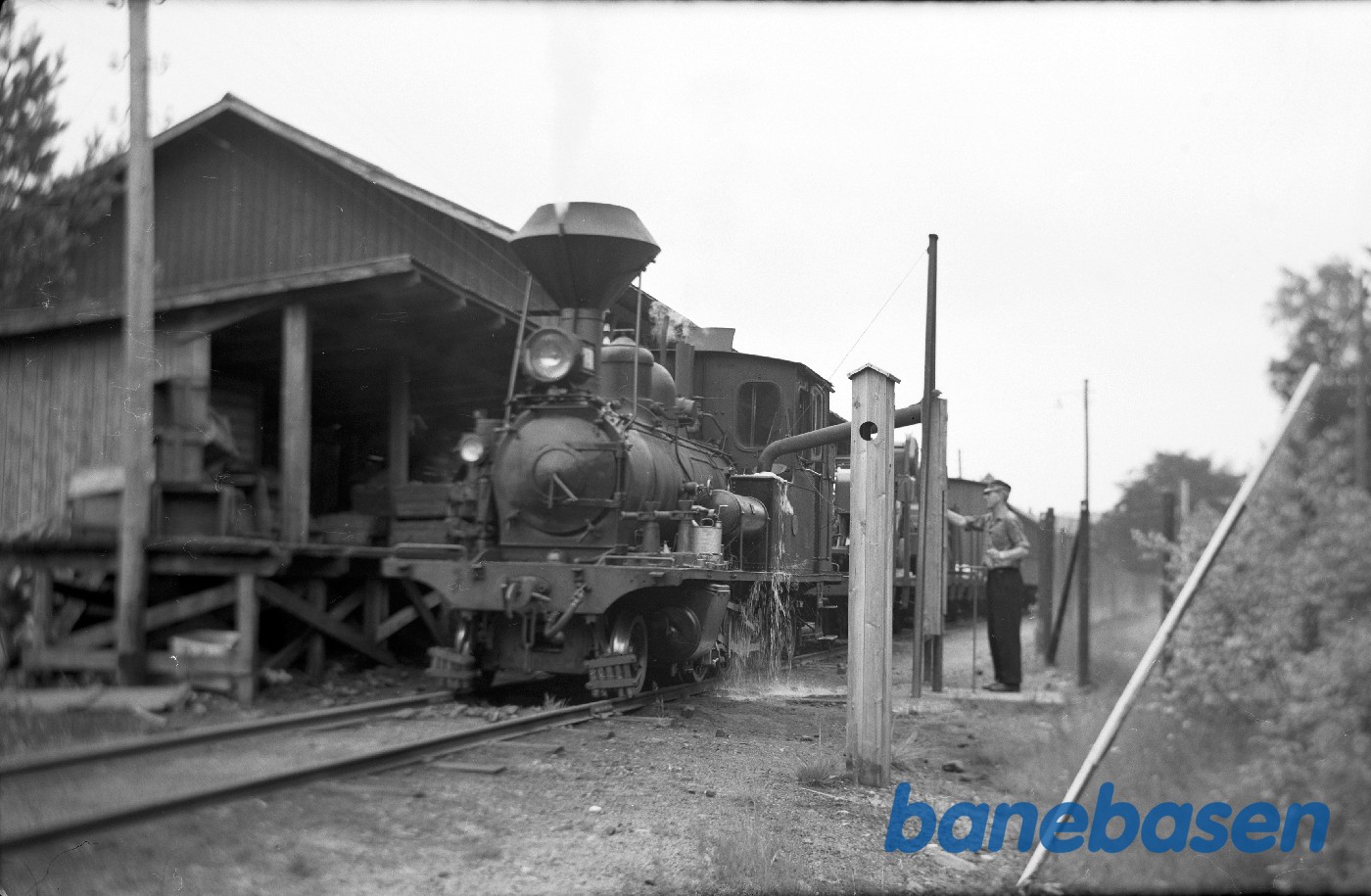 Motiv:Damplokomotiv nr. 2 med godstog 5661 tager vand