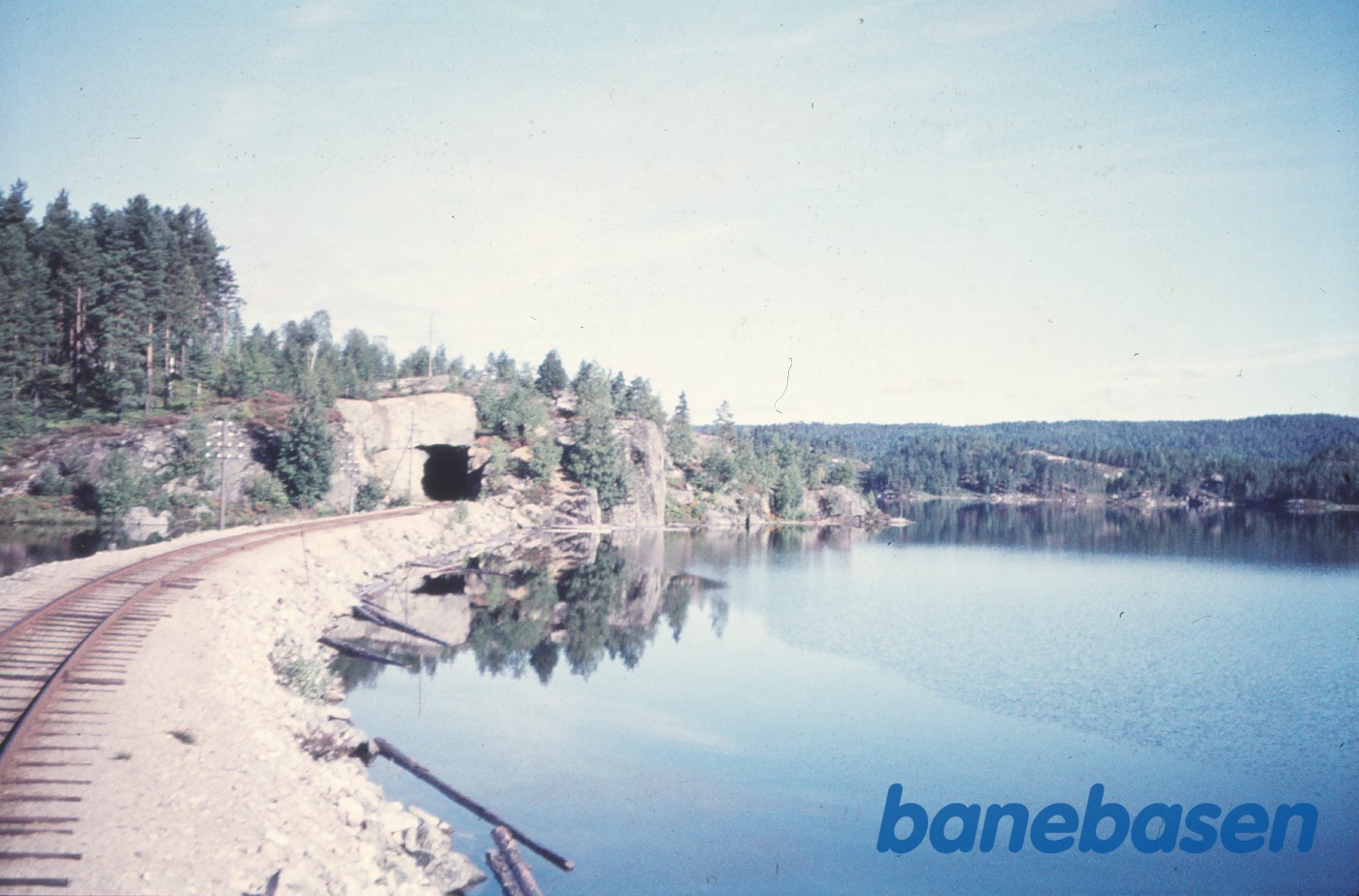 Motiv:Vue fremover fra lokomotivet i godstog 5661, nordover mod Gåseflå tunnel
