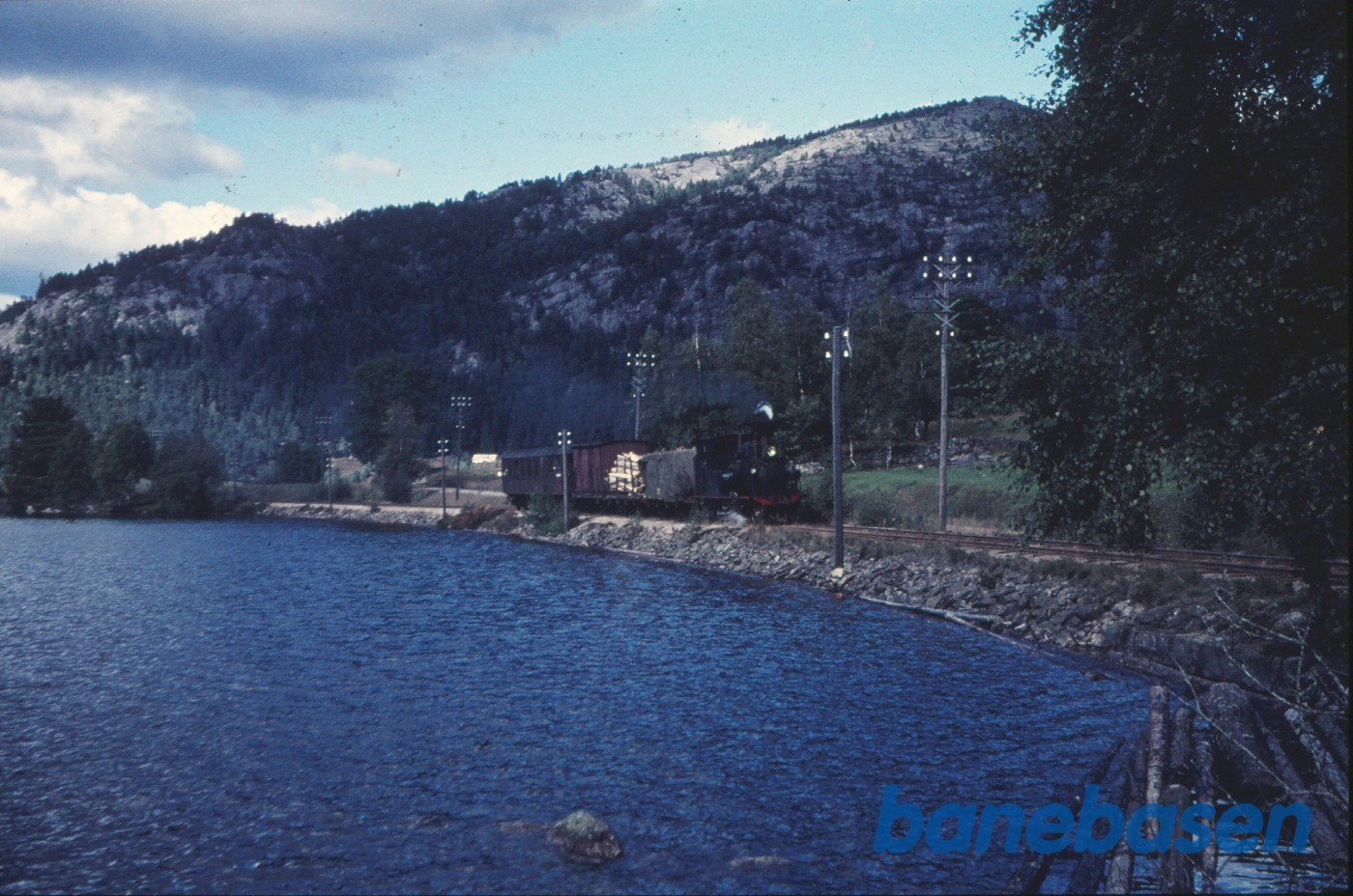 Damplokomotiv nr. 5 med godstog 5661 ved Vassenden, syd for Byglandsfjord