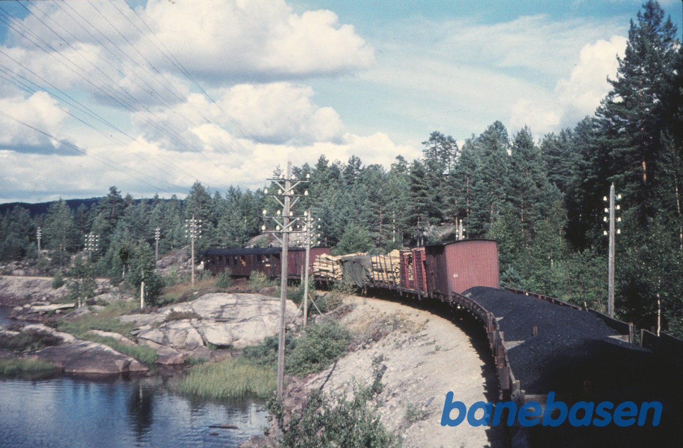 Motiv:Vue fra lokomotivet bagud langs godstog 5662 på fri strækning ved Hornskilen