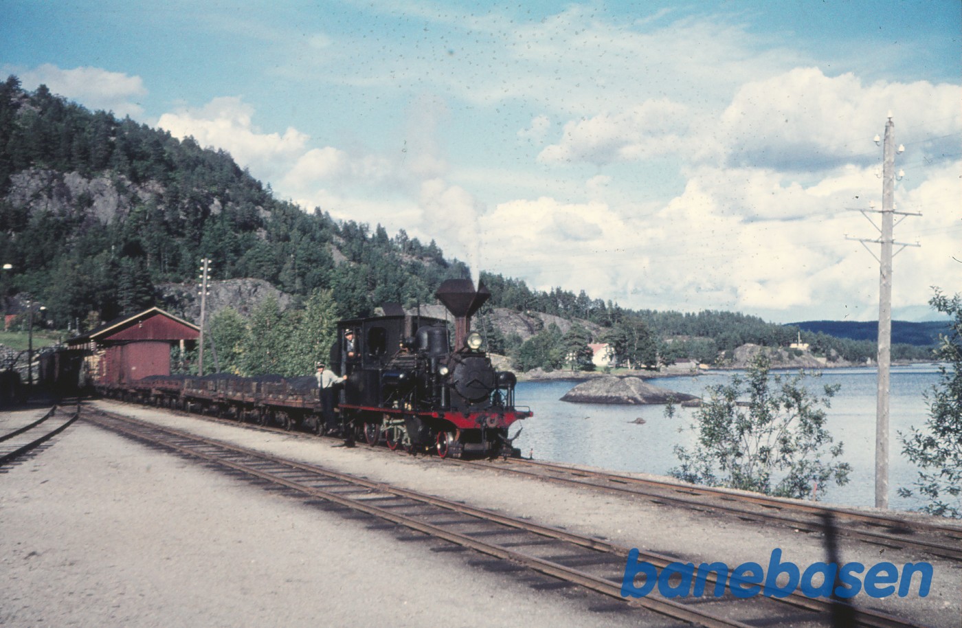 Motiv:Damplokomotiv nr. 5 rangerer med godstog
