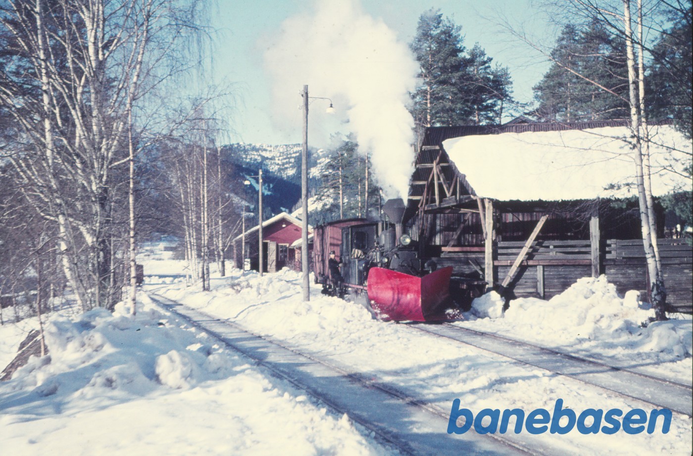 Damplokomotiv nr. 5 rangerer ved pakhuset