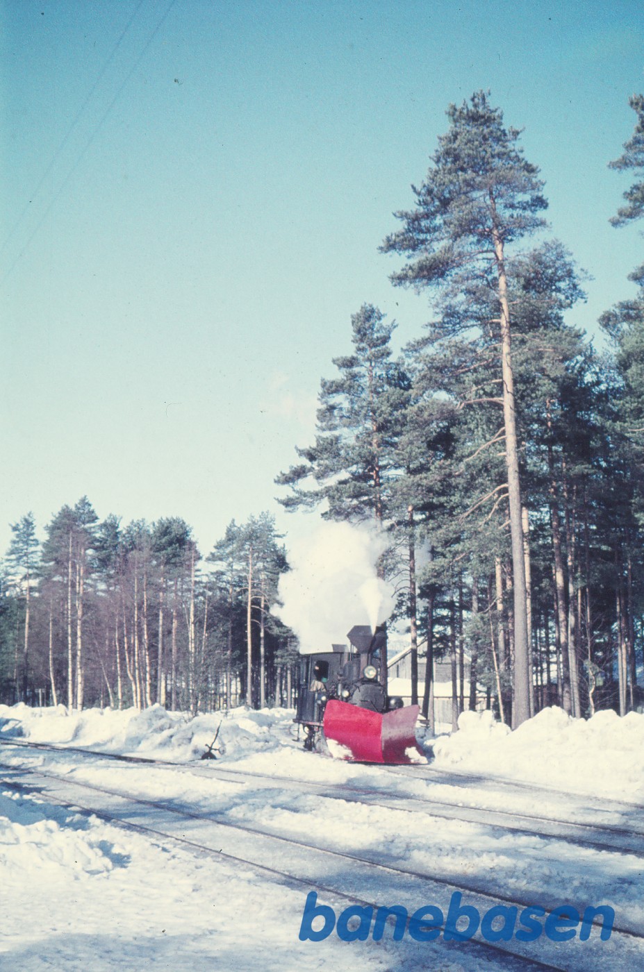 Motiv:Damplokomotiv nr. 5 rangerer på sidesporet til damp-savværket