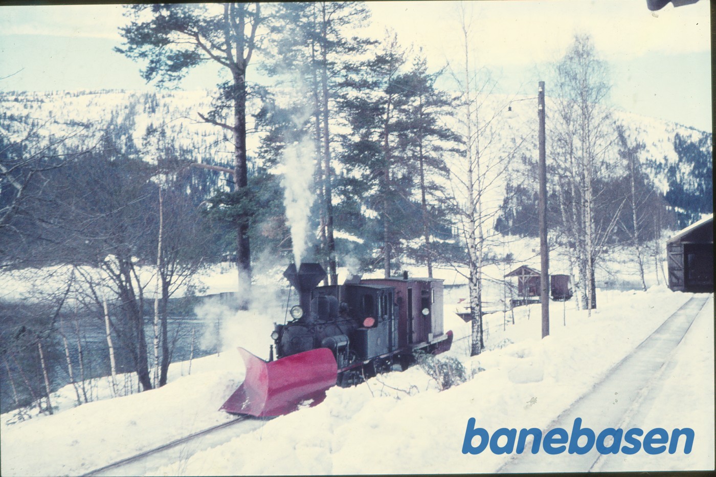 Damplokomotiv nr. 5 med sneplovtog på havnesporet
