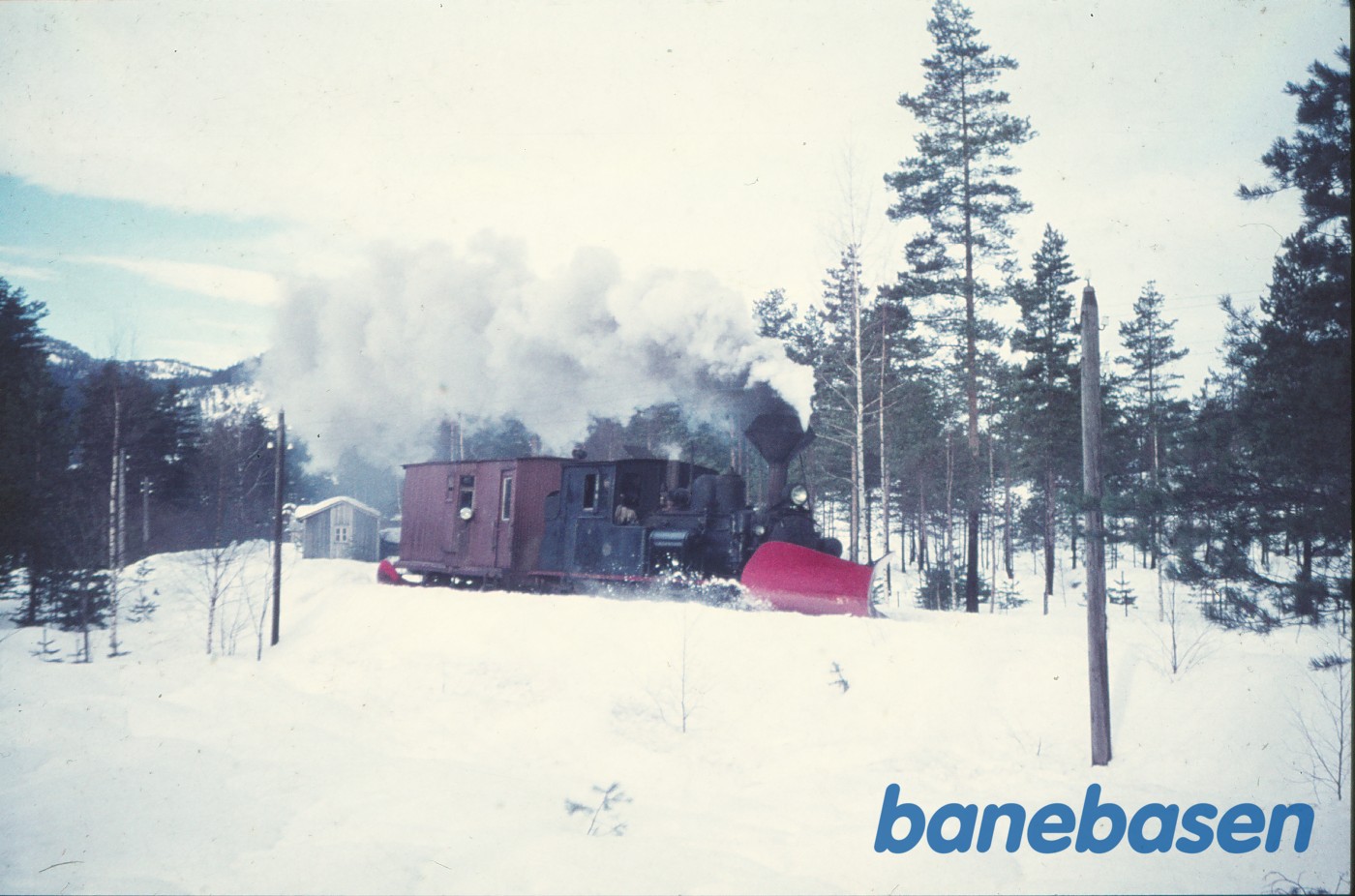Damplokomotiv nr. 5 med sneplovtog syd for Byglandsfjord