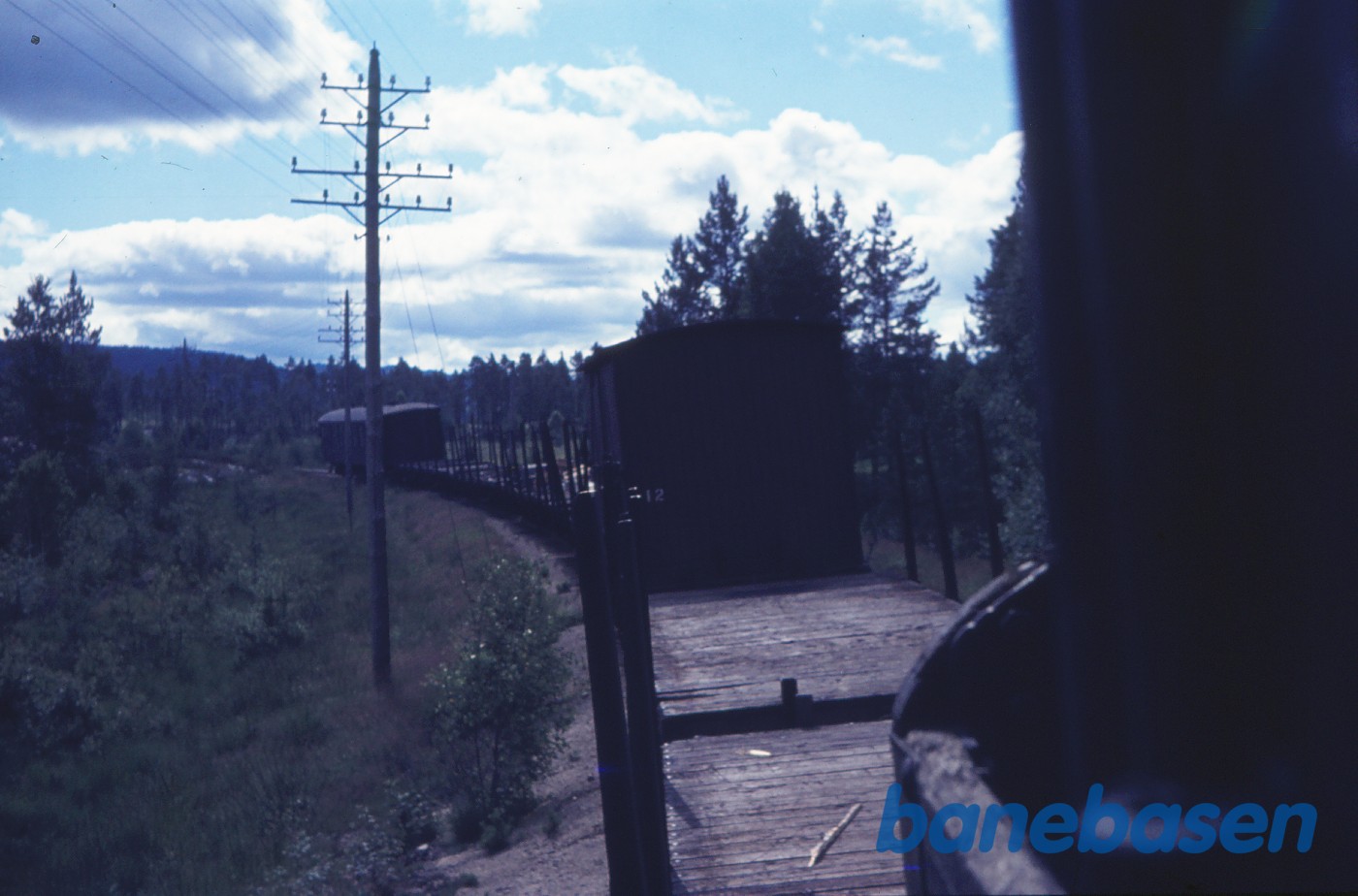 Vue fra lokomotivet bagud langs togstammen ved Follestø