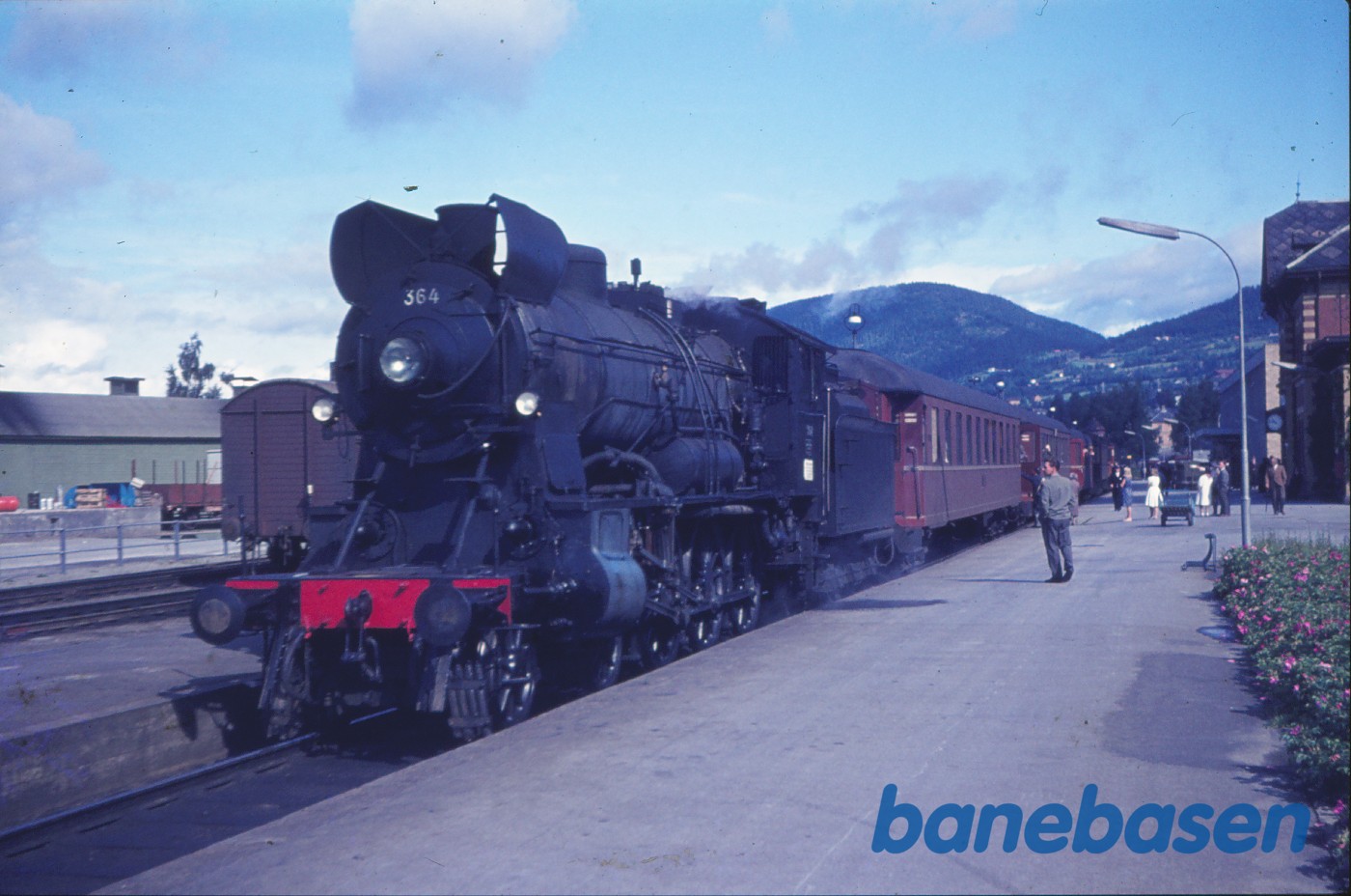 Motiv:Damplokomotiv type 30b nr. 364 med persontog
