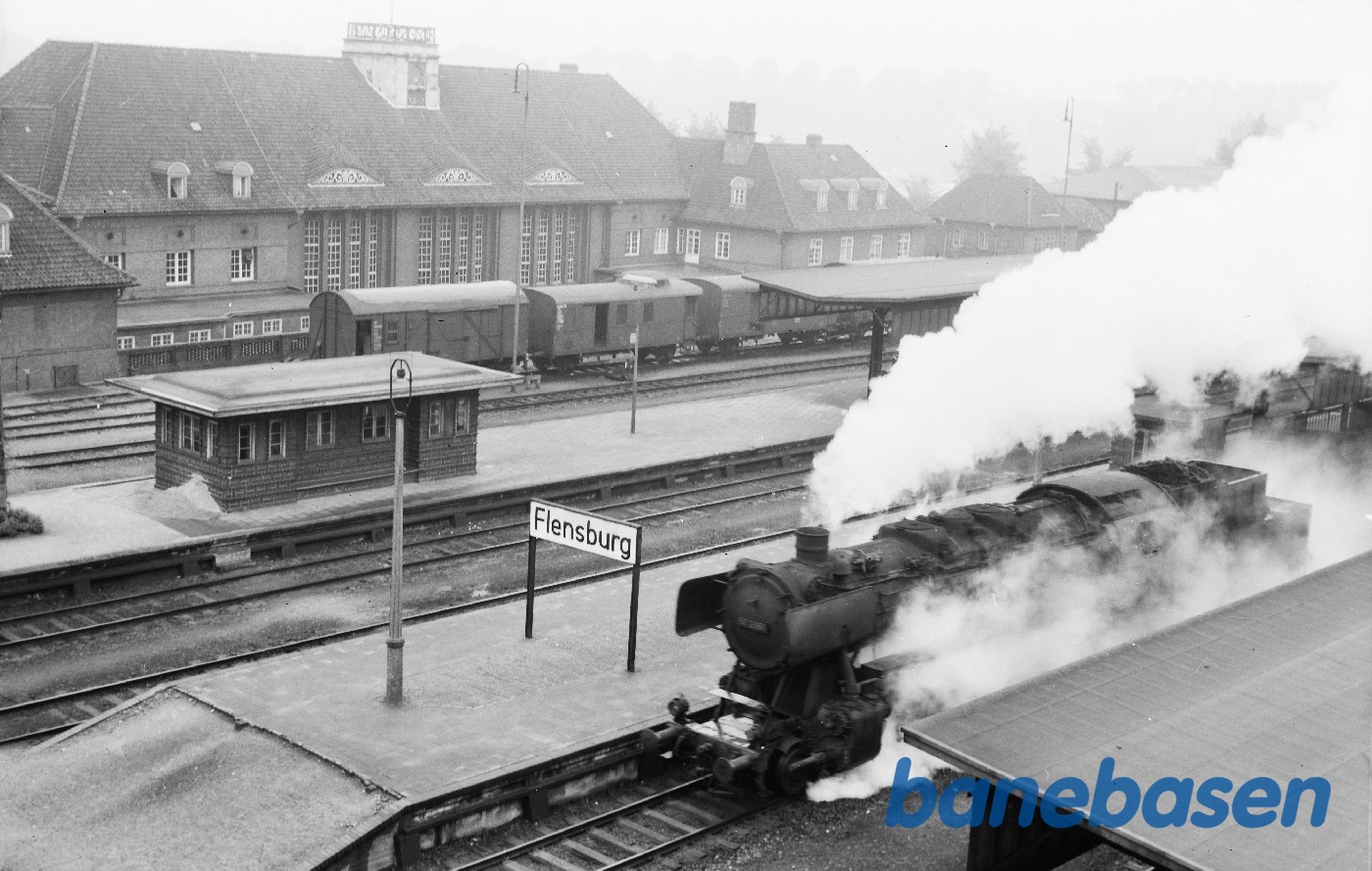 Flensborg station med bl.a. damplokomotiv 50 2961