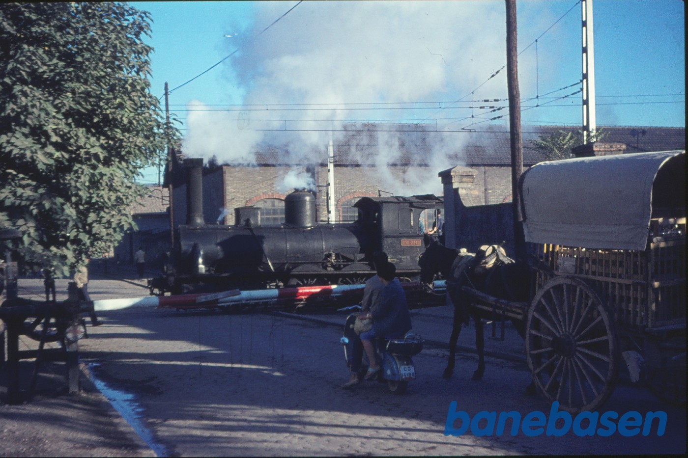 Motiv:Damplokomotiv 030-2242 i overkørsel