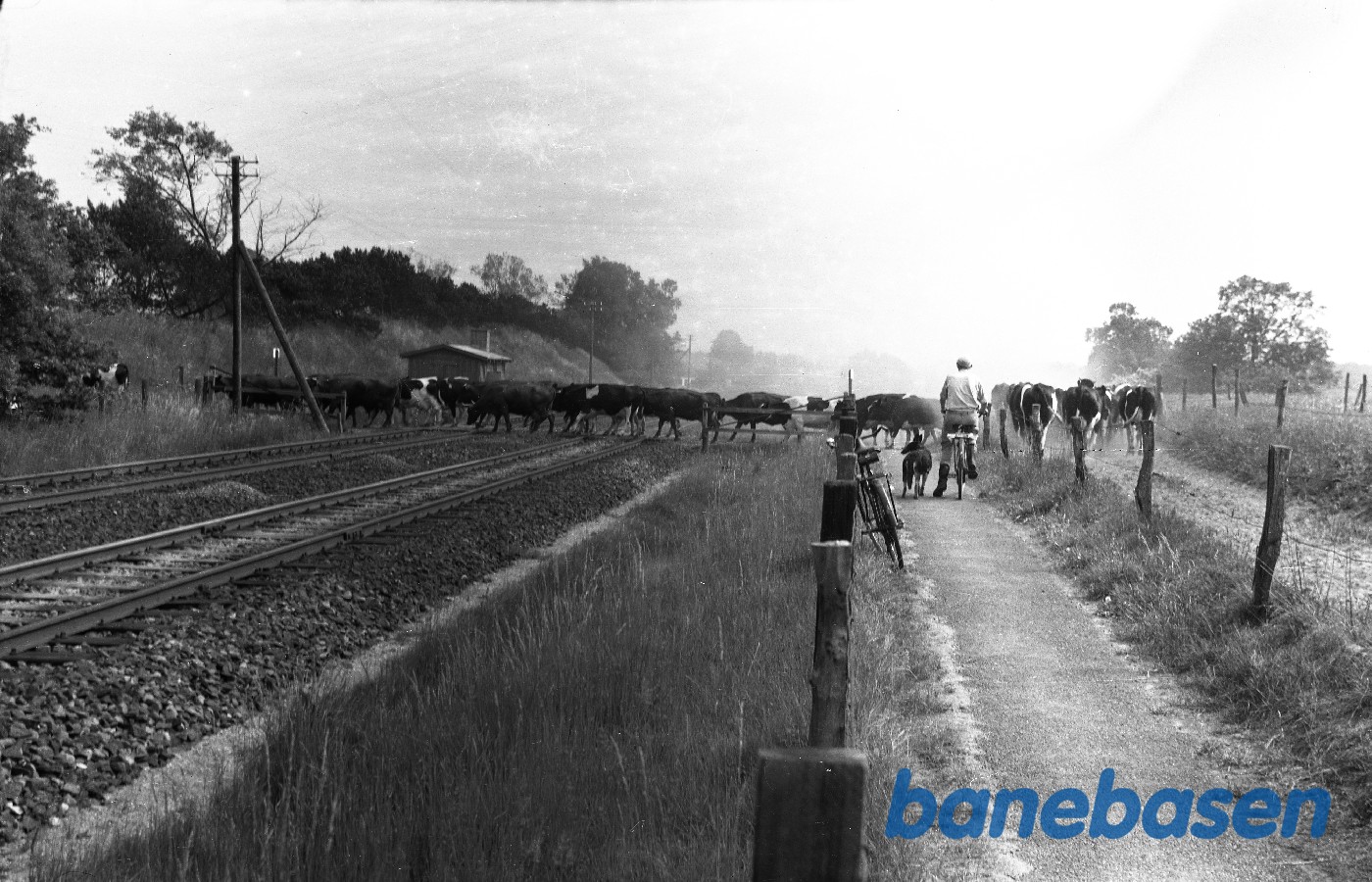 Motiv:Køer drives over Kystbanen mellem Nivå og Humlebæk