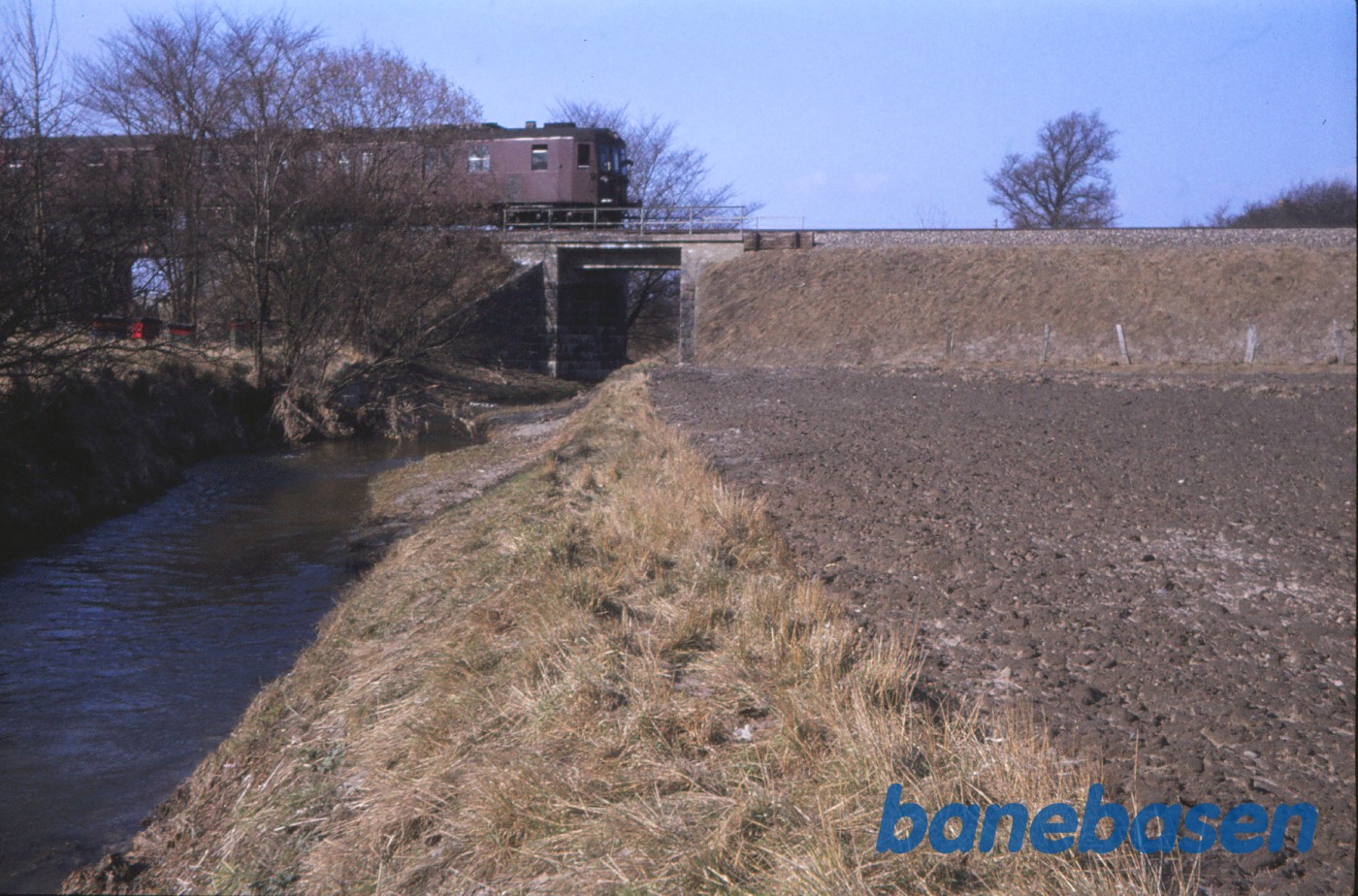 Motiv:MO 1813 med udflugtstog (?) ved Saltø å