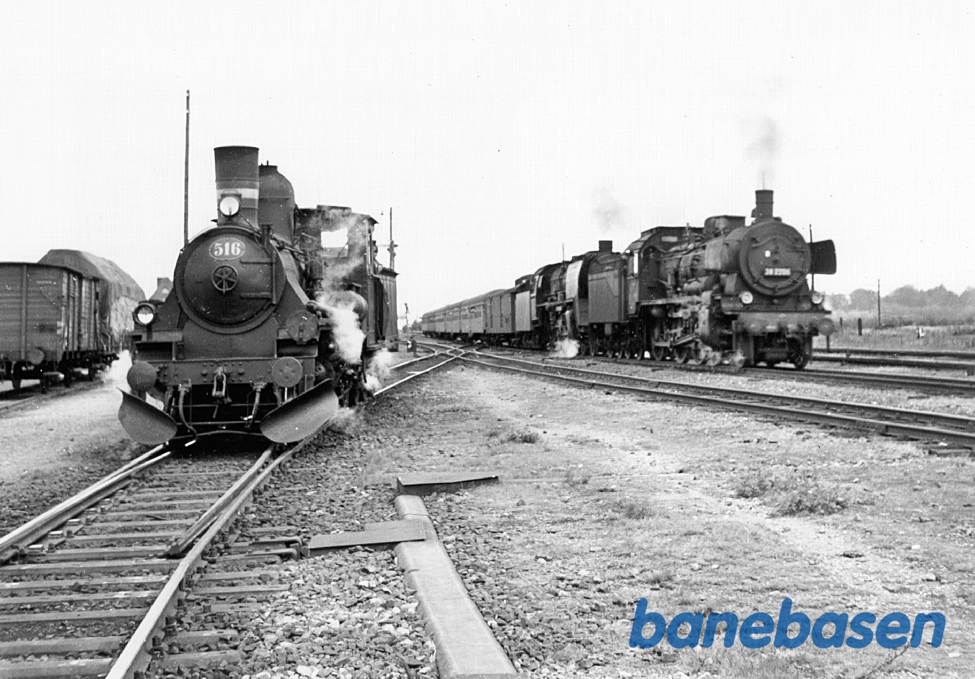 Motiv:Th. for K-maskinen er et DB-tog - med en 38'er og en 03'er - under udkørsel mod Hamburg Altona